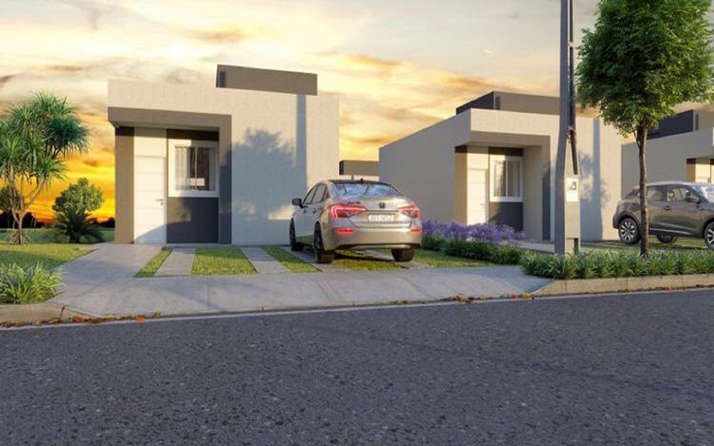 Casas de 2 dormitórios sendo 1 com suíte, 2 vagas de garagem descoberta por casa. Trata-se de residencial aberto, sendo assim, não há vagas para visitantes ou motos.